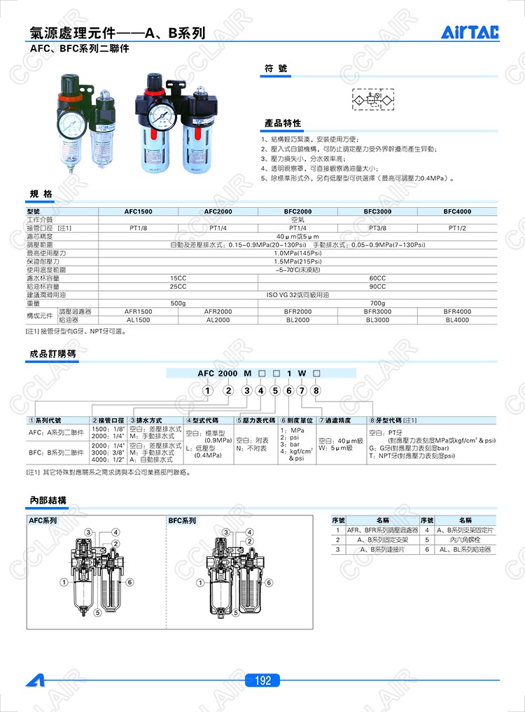 AFC1500,AFC1500M,AFC2000,AFC2000M,BFC2000,BFC2000M,BFC2000A,AIRTAC二聯(lián)件