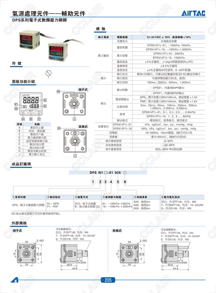 DPSN1-01020,DPSN1-01030,DPSN1-01050,DPSN1-10020,DPSN1-10030,AIRTAC電子式數(shù)顯壓力開關(guān)