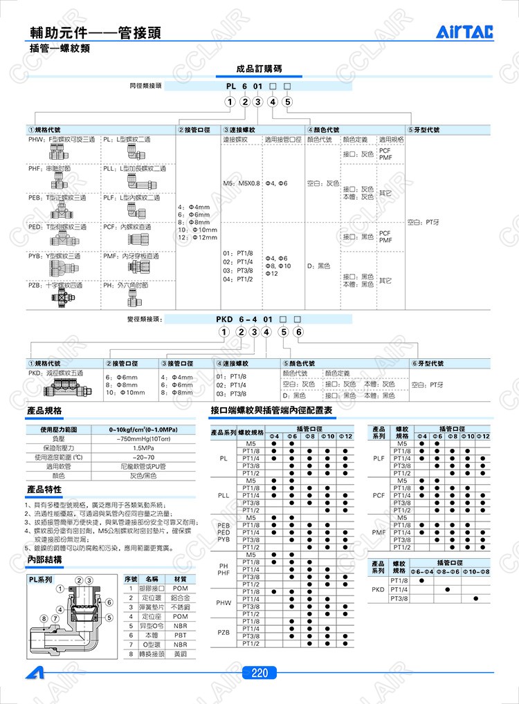 PL4M5,PCF6M5,PMF401,PLF4M5,PLL4M5,PHW401,PHF4M5,PKD6-401,PEB4M5,PYB4M5,PED4M5,PZB601,臺灣AIRTAC管接頭