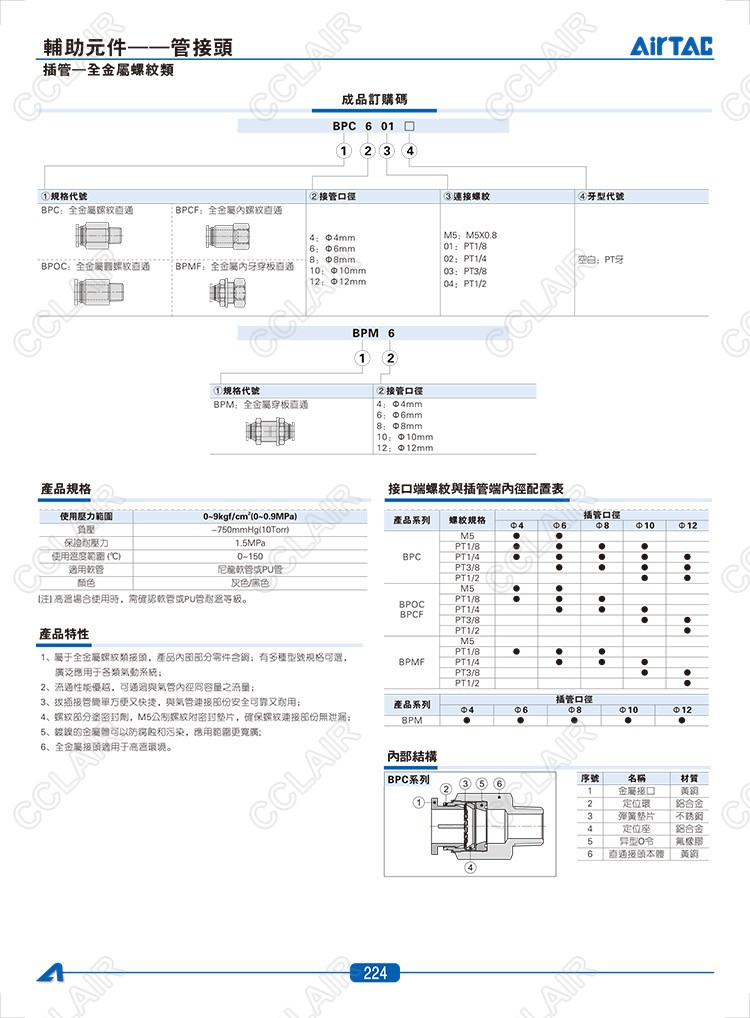 BPC4M5,BPC401,BPOC4M5,BPOC401,BPCF4M5,BPCF401,BPMF401,BPMF601,BPM4,BPM6,臺(tái)灣AIRTAC管接頭