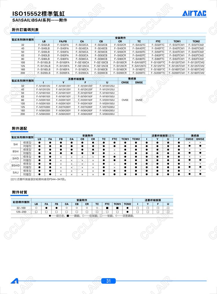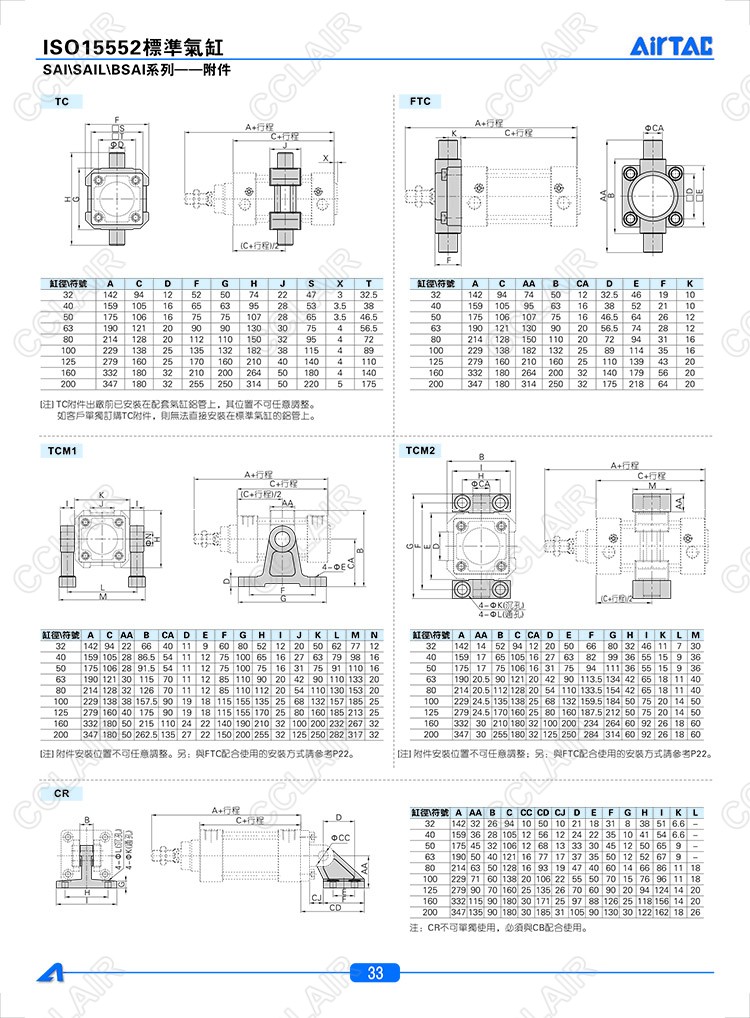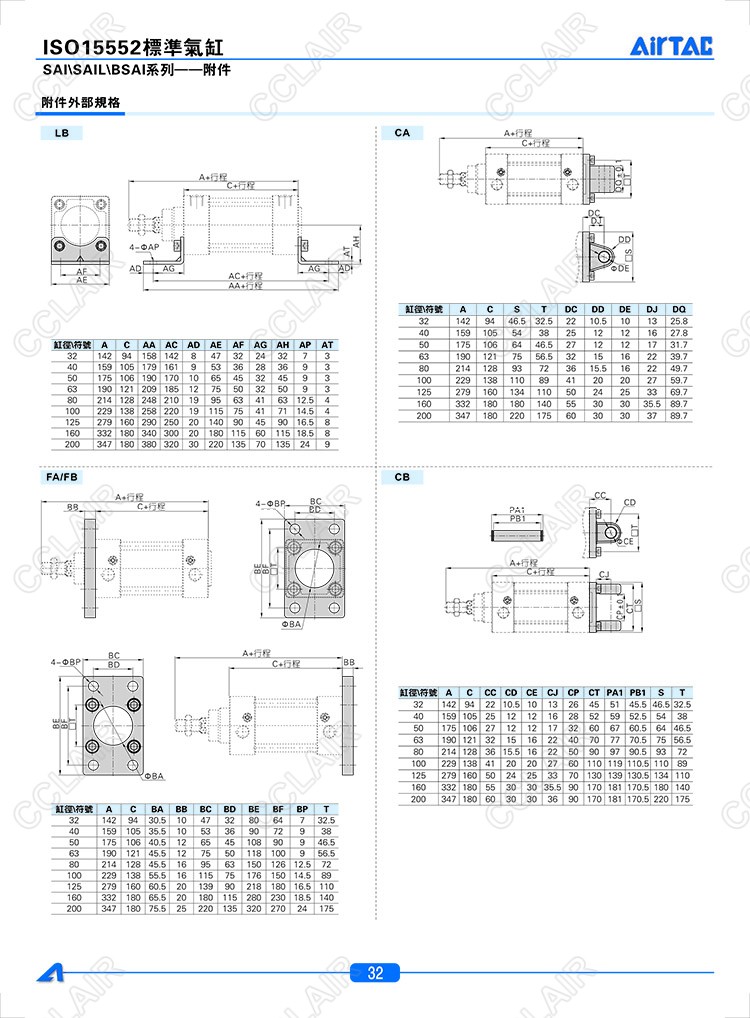 LB32,CA32,FA/FB32,CB32,CR32,TC32,FTC32,TCM132,TCM232,AIRTAC亞德客標準氣缸附件