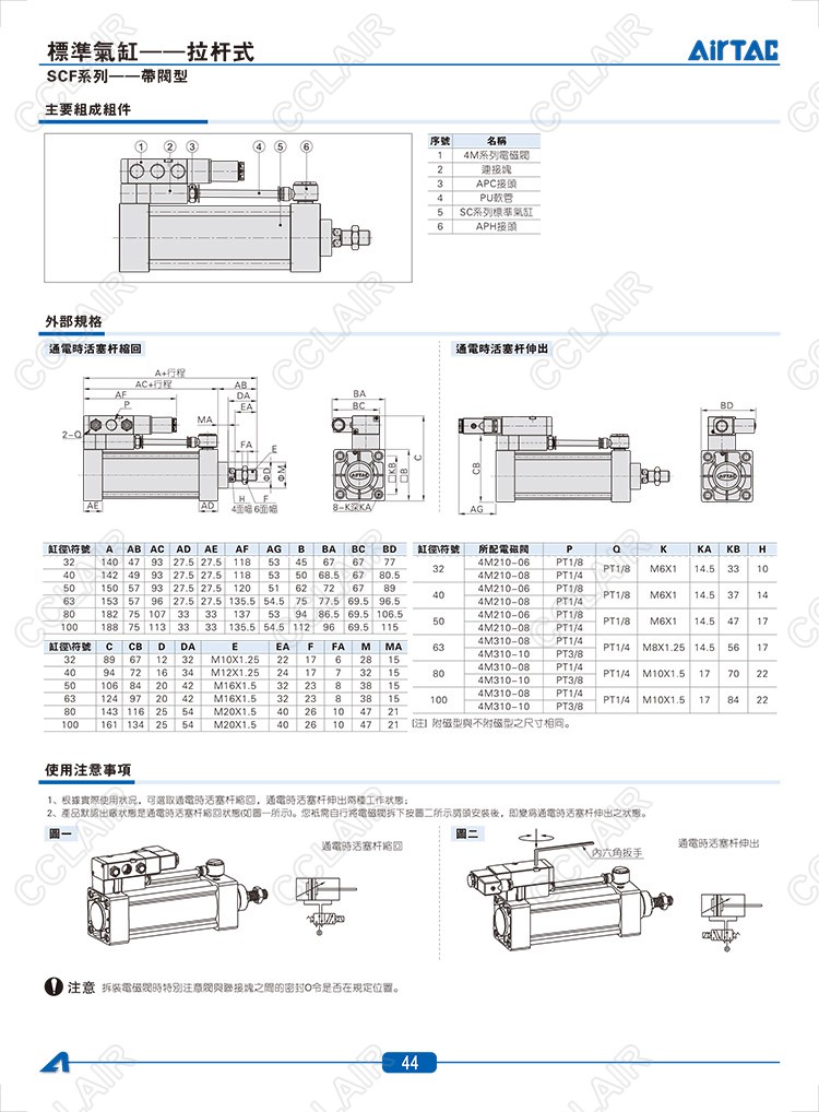 SCF32*25,SCF32*25-S,SCF32*50,SCF32*50-S,SCF32*75,SCF32*75-S,AIRTAC亞德客標(biāo)準(zhǔn)氣缸-拉桿式