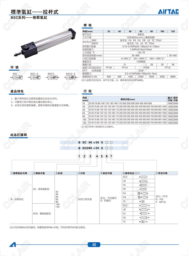 BSC32*25,BSC32*25-S,BSC32*50,BSCD32*25,BSCD32*25-S,BSCD32*50,AIRTAC亞德客標準氣缸-拉桿式