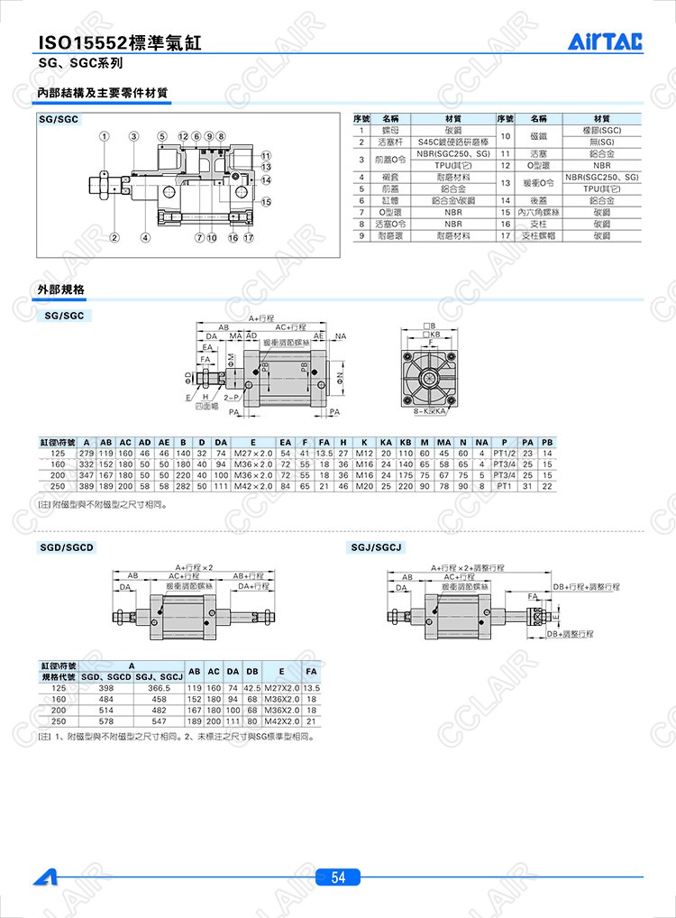 SG125*25,SG125*25-S,SGD125*25,SGD125*25-S,SGJ125*25,SGJ125*25-S,AIRTAC亞德客標準氣缸