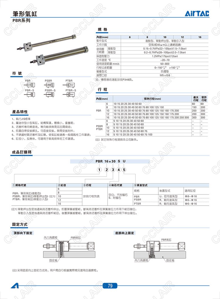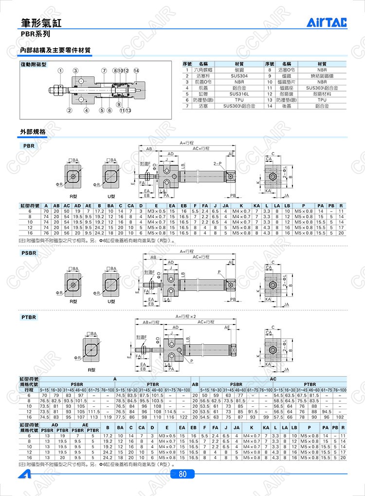 PBR6*10,PBR6*10-S,PSBR6*5,PSBR6*5-S,PTBR8*30,PTBR8*30-S,AIRTAC亞德客筆型氣缸