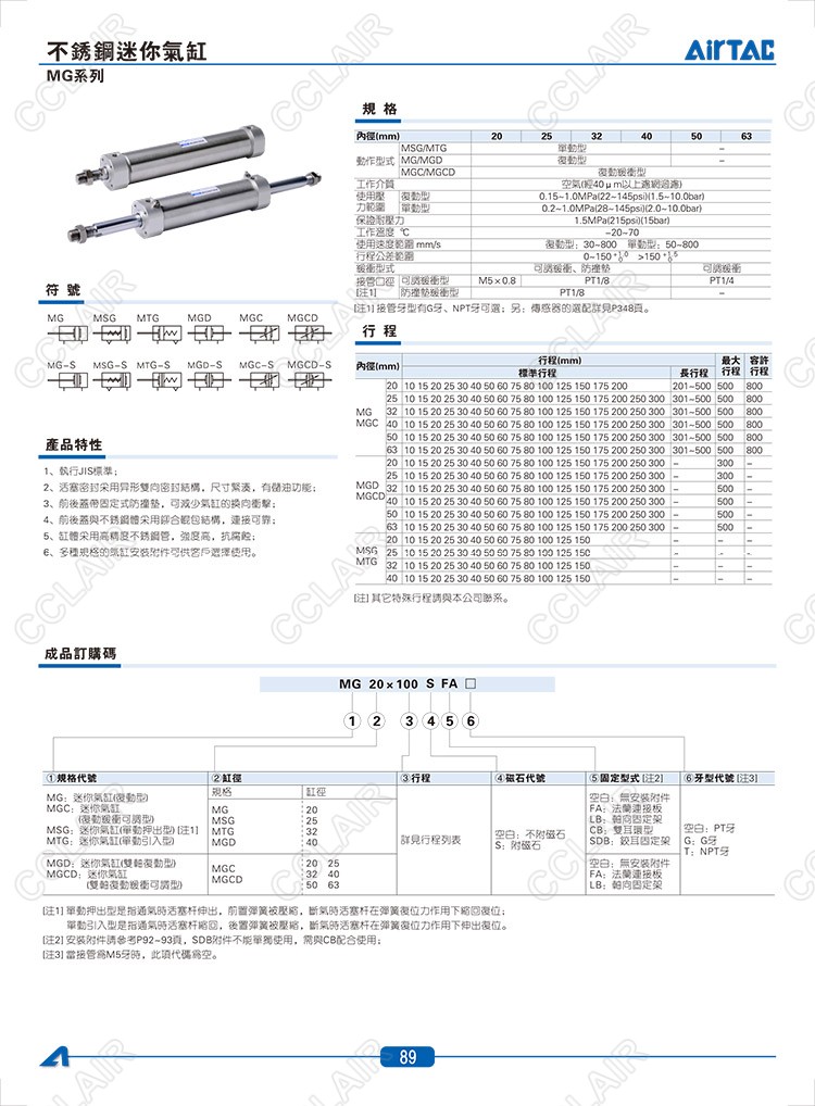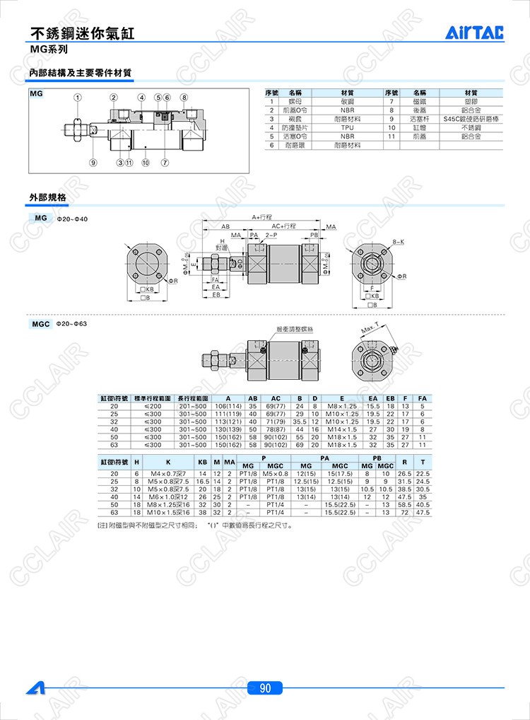 MG20*10,MGC20*10,MGD20*10,MGCD20*10,MSG20*10,MTG20*10,AIRTAC亞德客迷你氣缸
