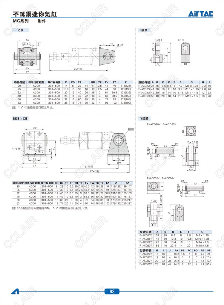AIRTAC亞德客 迷你氣缸CB20,CB25,CB32,CB40,CB50,CB63 SDB20,SDB25,SDB32,SDB40,SDB50,SDB63 F-ACQ20I,F-ACQ25I,F-ACQ32I,F-ACQ50I F-ACQ20Y,F-ACQ25Y,F-ACQ32Y,F-ACQ50Y