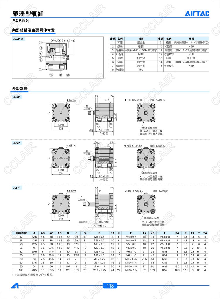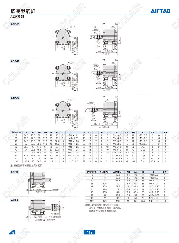 ACP12*5,ACP12*5-S,ASP12*5,ASP12*5-S,ATP12*5,ACPD12*5,ACPJ12*5,AIRTAC亞德客緊湊型氣缸