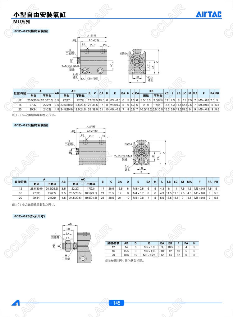 MU4*4,MU4*4-S,MU4*6,MU4*6-S,MSU4*4,MSU4*4-S,MSU4*6,AIRTAC亞德客小型自由安裝氣缸