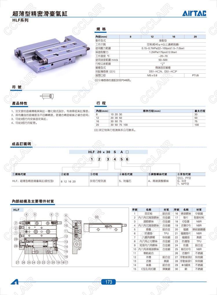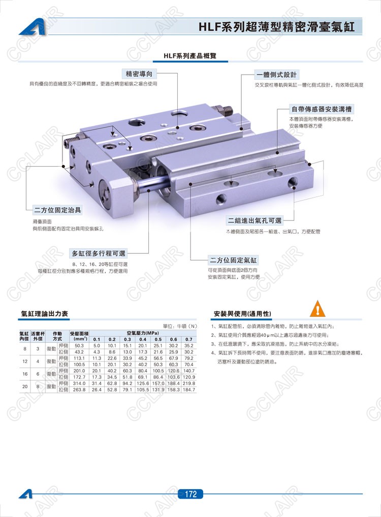 HLF8*10-S,HLF8*20-S,HLF8*30-S,HLF12*20-S,HLF12*30-S,AIRTAC亞德客超薄型精密滑臺氣缸