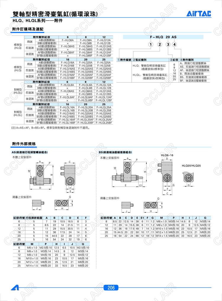 F-HLQ6AS,F-HLQ8AS,F-HLQ12AS,F-HLQ8BS,F-HLQ12BS,F-HLQ16BS,AIRTAC亞德客雙軸型精密滑臺氣缸附件