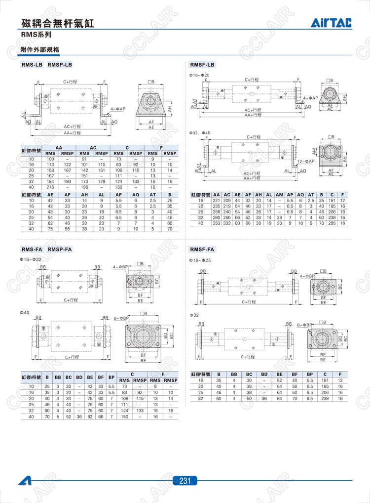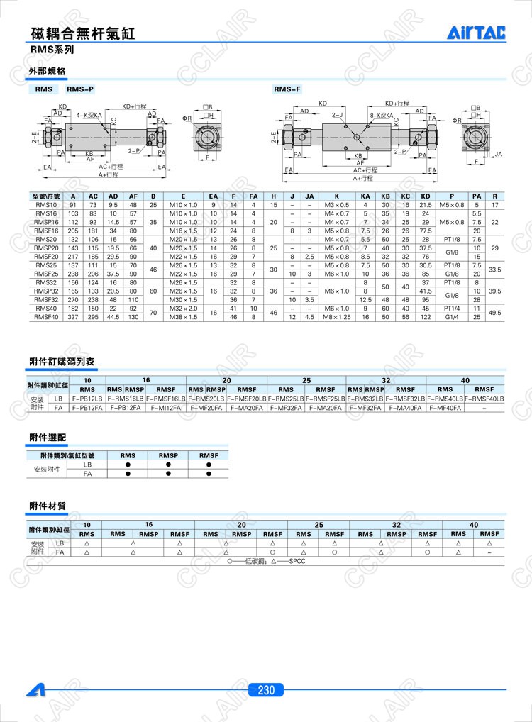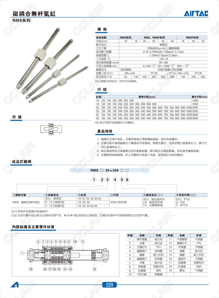 RMS10*50,RMS10*100,RMS10*150,RMS10*200,RMS10*250,AIRTAC亞德客磁耦合無桿氣缸