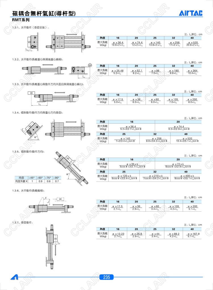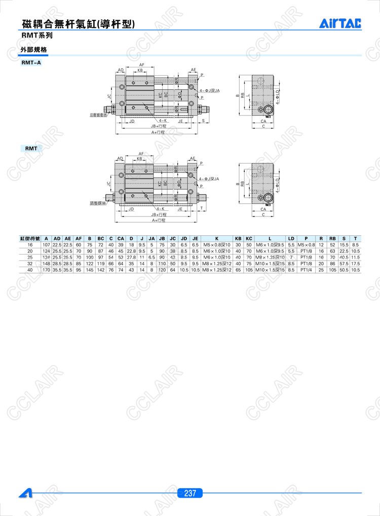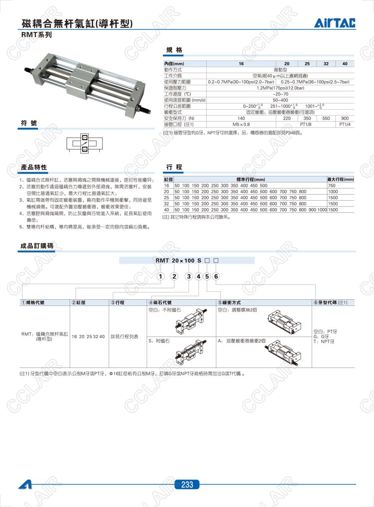 RMT16*50,RMT20*50,RMT25*50,RMT32*50,RMT32*50-S,RMT40*50,RMT40*50-S,亞德客AIRTAC磁耦合無桿氣缸
