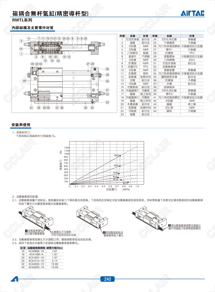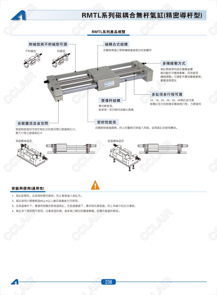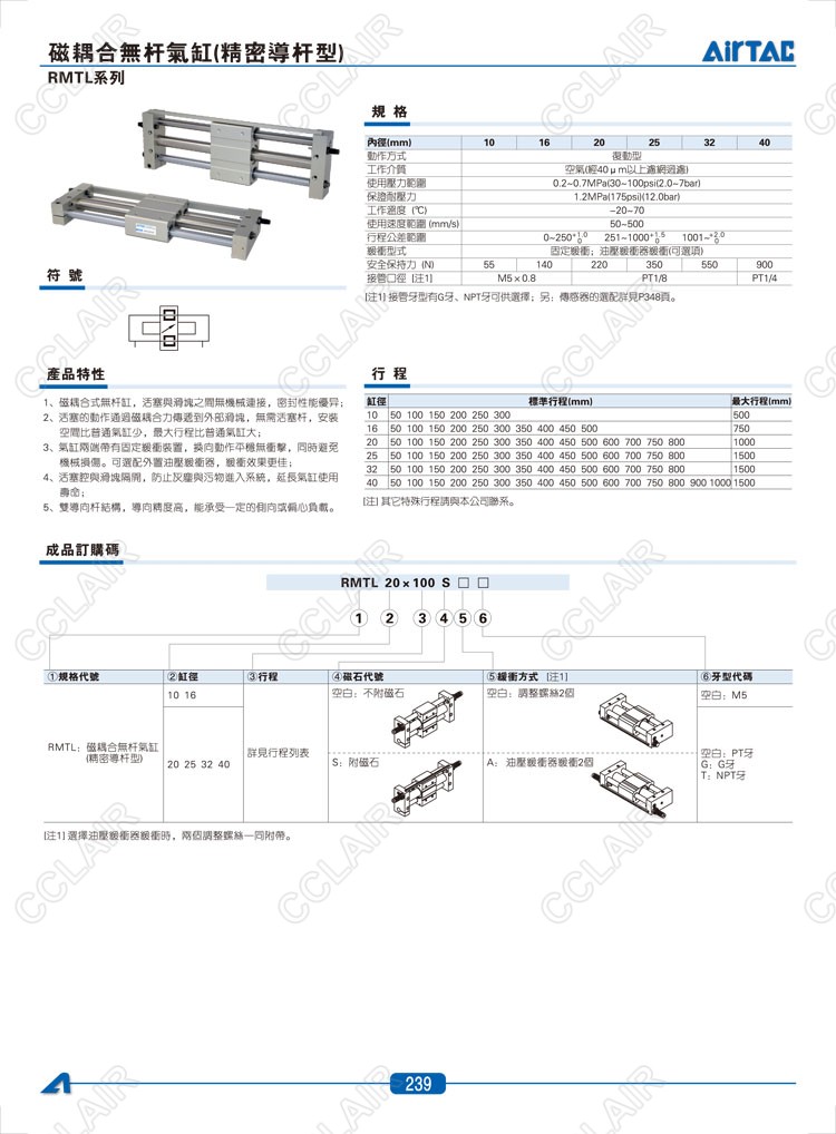 亞德客AIRTAC,RMTL16*50,RMTL20*50,RMTL25*50,RMTL32*50,RMTL32*50-S,RMTL40*50,RMTL40*50-S,磁耦合無(wú)桿氣缸