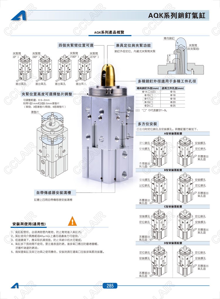 亞德客AIRTAC,AQK50SAAA,AQK50SAAB,AQK50SAAC,AQK50SBAA,AQK50SBAB,AQK50SBAC,銷釘氣缸