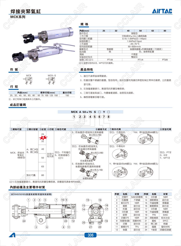 亞德客AIRTAC,MCKA25*50,MCKA25*50-S,MCKB25*50,MCKB25*50-S,MCK80*50,MCK80*50-S,焊接夾緊氣缸
