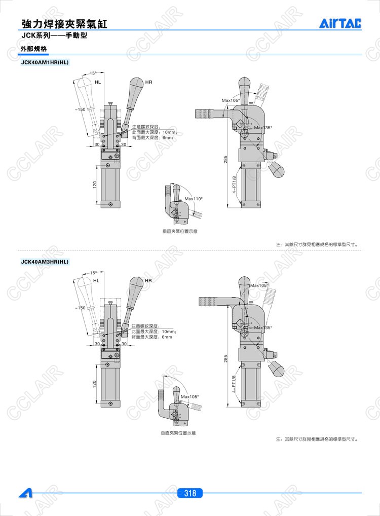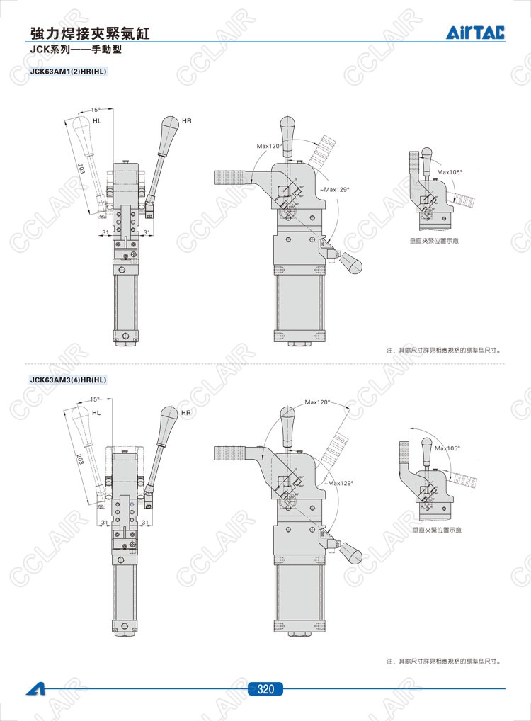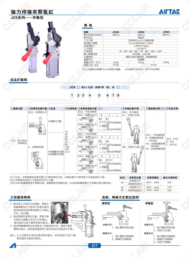 亞德客AIRTAC,JCK40*15AM1R,JCK40*15AM1C,JCKV40*15AM1R,JCKV40*15AM1C,JCKV40*15AM1L,焊接夾緊氣缸-手動型