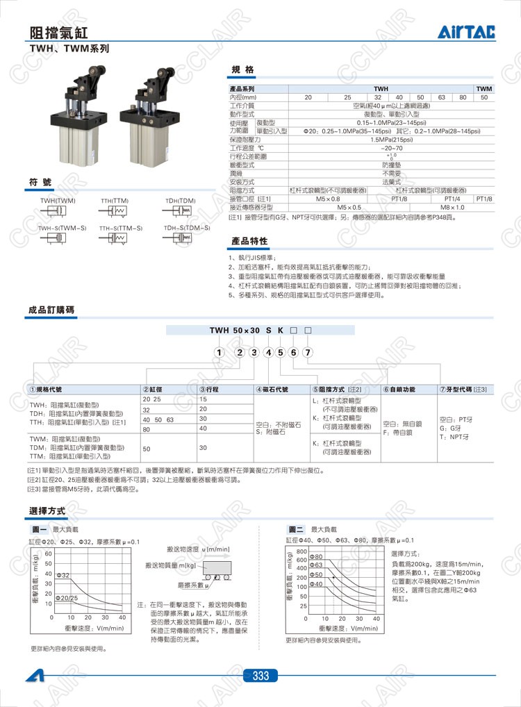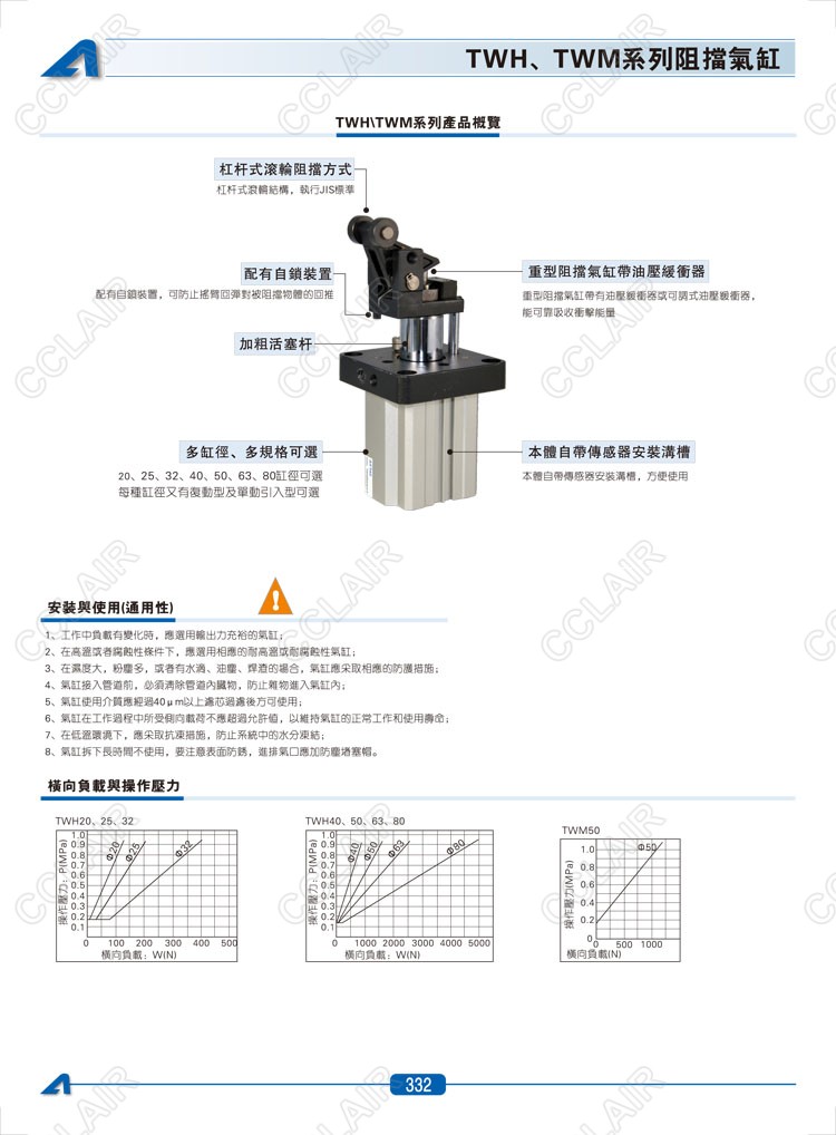 亞德客AIRTAC,TWH20*15-L,TWH20*15-S-L,TWH20*15-K,TWM50*30-K,TWM50*30-S-K,TDM50*30-K,阻擋氣缸