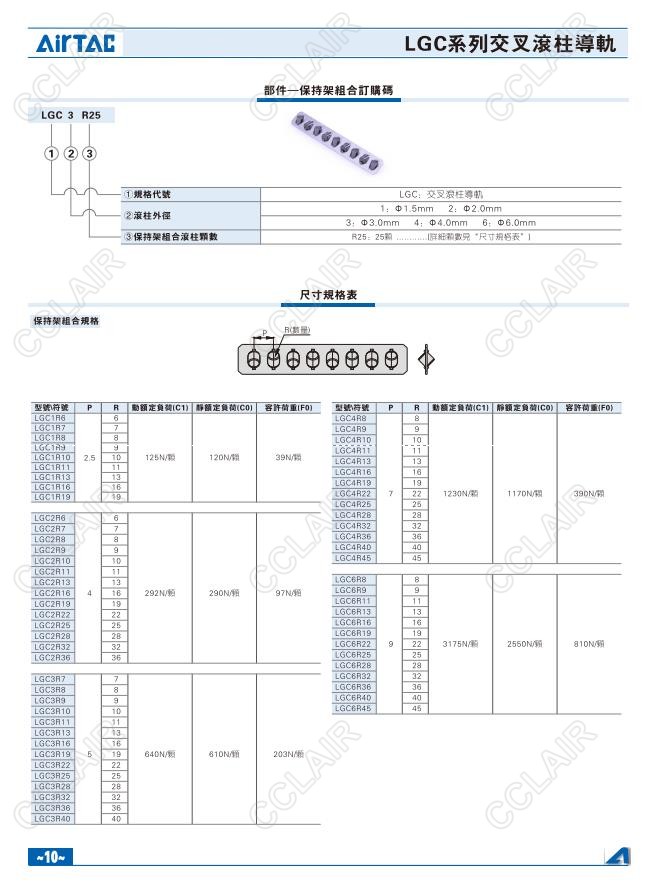 亞德客AIRTAC,LGC1A20,LGC1A30,LGC2A30,LGC2A45,LGC3A50,LGC3A75,LGC4A80,LGC4A120,交叉滾柱導軌