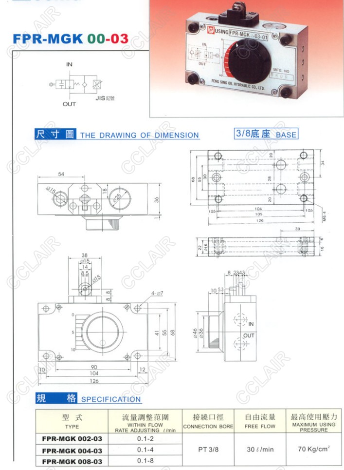 USING峰欣 FPR-MGK002-03,FPR-MGK004-03,FPR-MGK008-03,流量控制閥