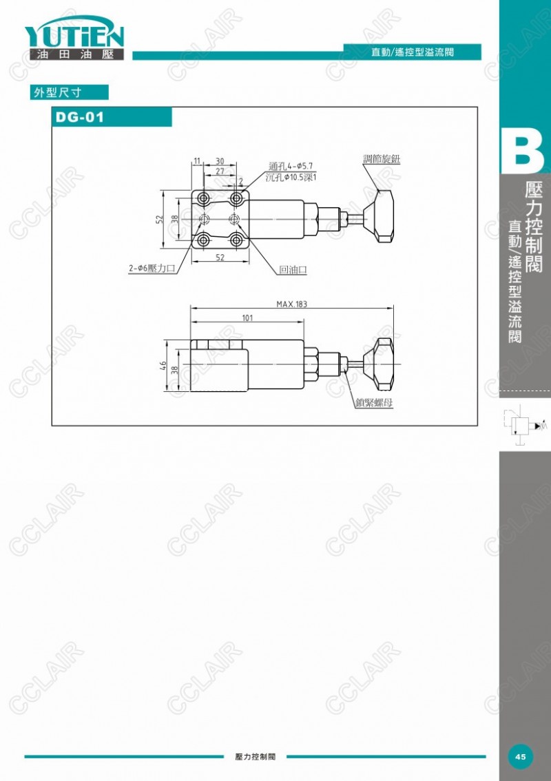 YUTIEN油田 直動/遙控型溢流閥DG-01-1,DG-01-2,DG-01-3,DT-01-1,DT-01-2,DT-01-3,DG-02-1,DG-02-3,DT-02-1,DT-02-3