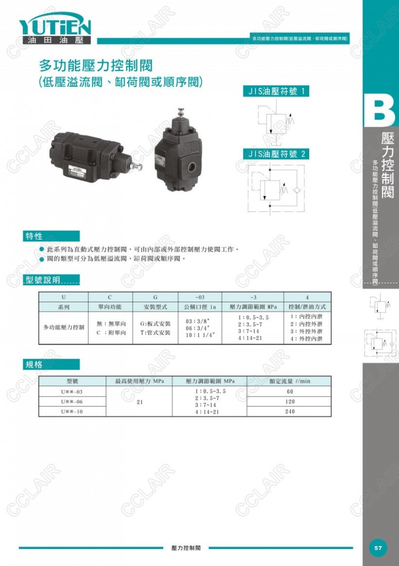 YUTIEN油田多功能壓力控制閥UT-03,UT-06,UT-10,UCT-03,UCT-06,UCT-10,UCG-03,UCG-06,UCG-10,UG-03,UG-06,UG-10