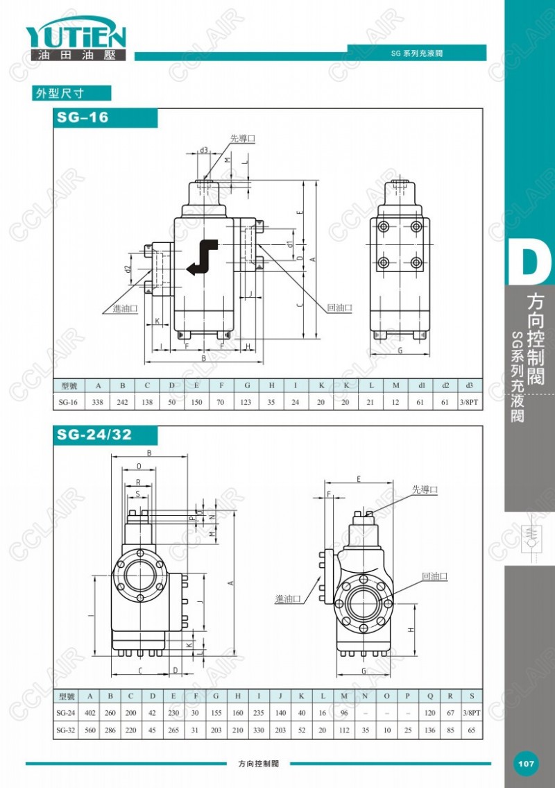 YUTIEN油田充液閥SG-16,SG-16-LR,SG-24,SG-24-LR,SG-32,SG-32-LR