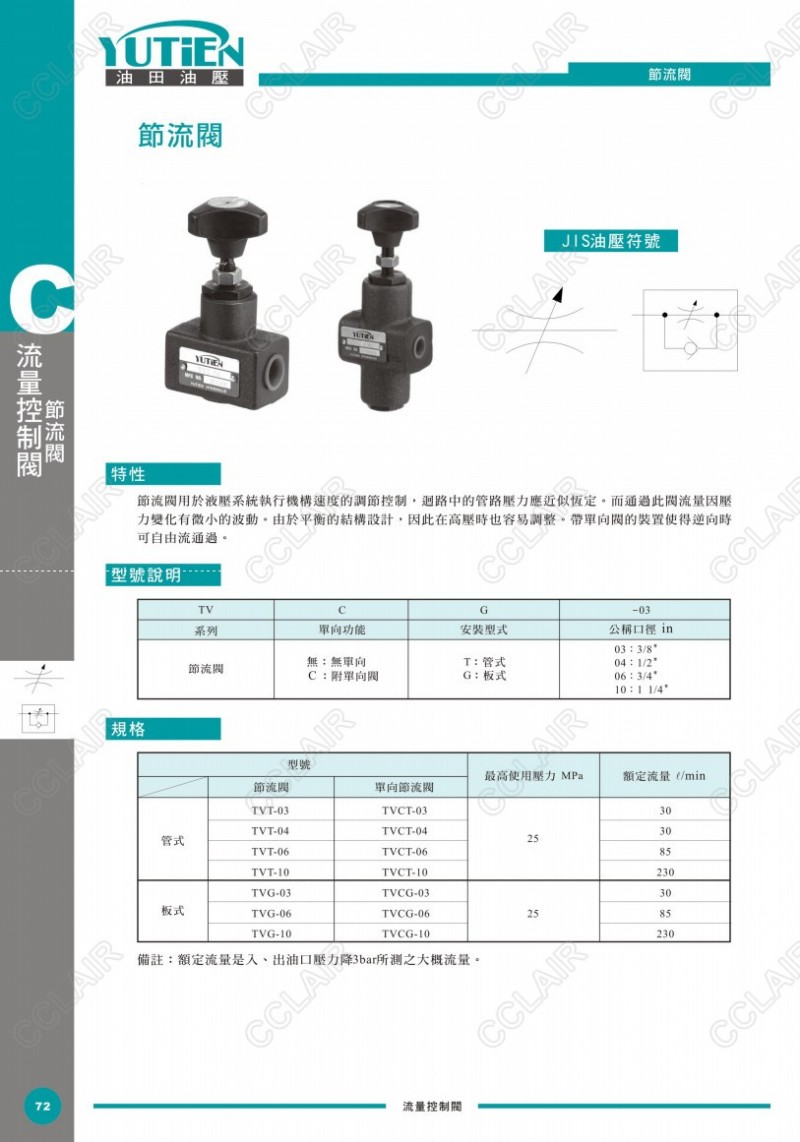 YUTIEN油田節(jié)流閥TVT-03,TVT-04,TVT-10,TVG-03,TVG-06,TVG-10,TVCT-03,TVCT-06,TVCT-10,TVCG-03,TVCG-06