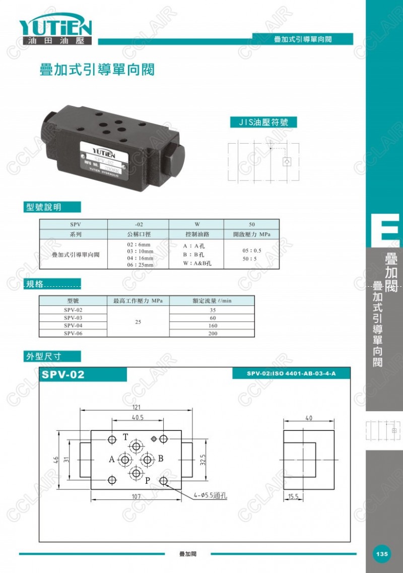 YUTIEN油田疊加式引導(dǎo)單向閥SPV-02A,SPV-02B,SPV-03B,SPV-03W,SPV-04A,SPV-04B,SPV-06B,SPV-06W