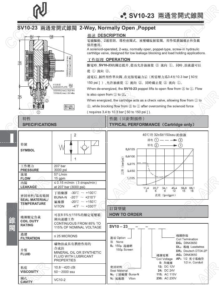 Northman北部精機,兩通常開式錐閥SV10-23S-N-0-DG,SV10-23S-N-0-DL,SV10-23S-N-0-DR,SV10-23S-N-230-DR,SV10-23S-N-230-AG,SV10-23S-N-230-AP,SV10-23S-V-24-DG,SV10-23S-V-24-DL,SV10-23S-V-230-AG,SV10-23S-V-230-AP