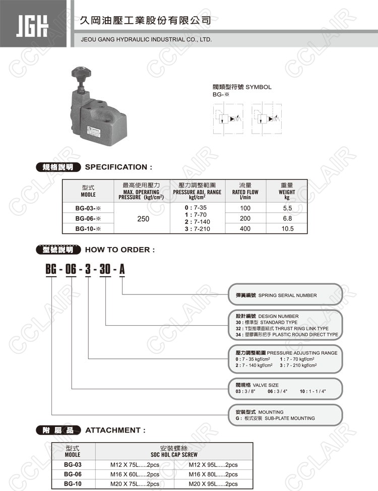 JeouGang臺(tái)灣久岡,先導(dǎo)式溢流閥BG-03-0-30-A,BG-03-0-32-A,BG-03-0-34-A,BG-03-3-30-A,BG-03-3-32-A,BG-03-3-34-A,BG-06-0-30-A,BG-06-0-32-ABG-06-3-32-A,BG-06-3-34-A,BG-10-2-30-A,BG-10-2-32-A,BG-10-2-34-A