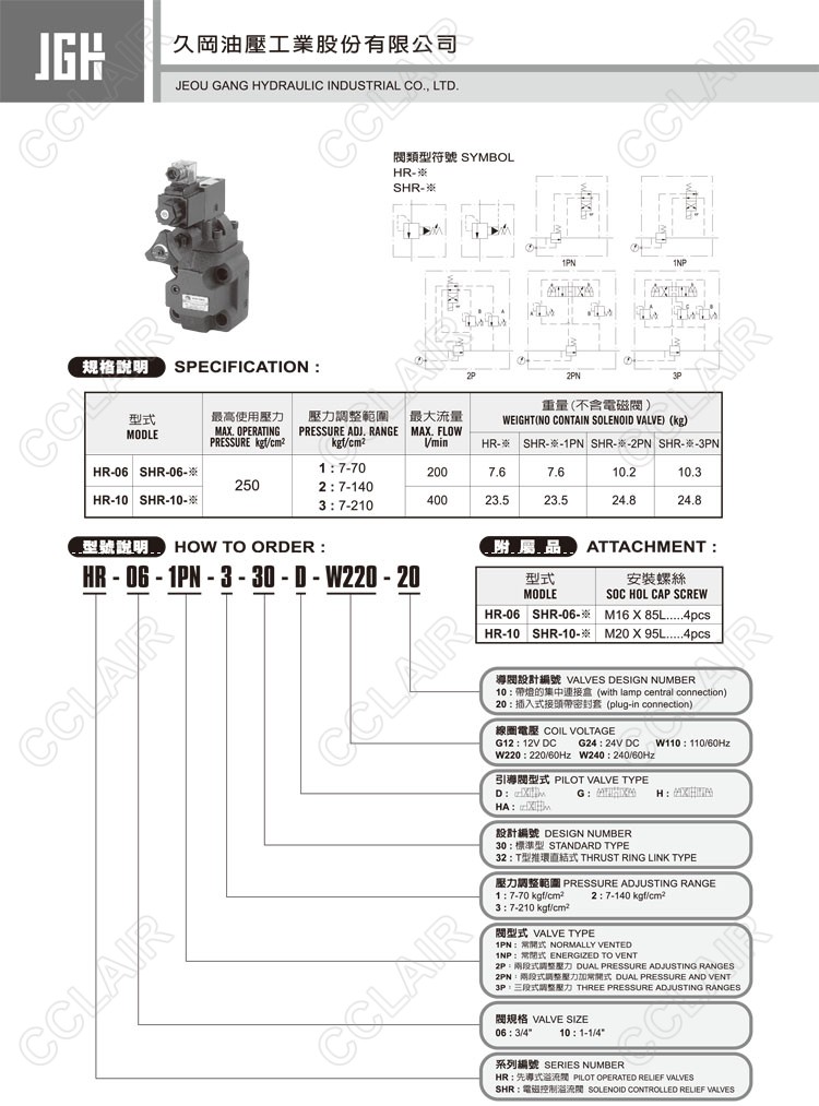 JeouGang臺(tái)灣久岡,先導(dǎo)式溢流閥HR-06-1PN-1-30-D-G12-10,HR-06-1PN-3-30-HA-W220-10,HR-10-1NP-2-32-HA-W110-20,SHR-06-1PN-1-30-HA-G12-10,SHR-06-2PN-3-30-H-W240-10,SHR-10-1NP-3-32-G-G12-10,SHR-10-3P-3-32-HA-W240-20