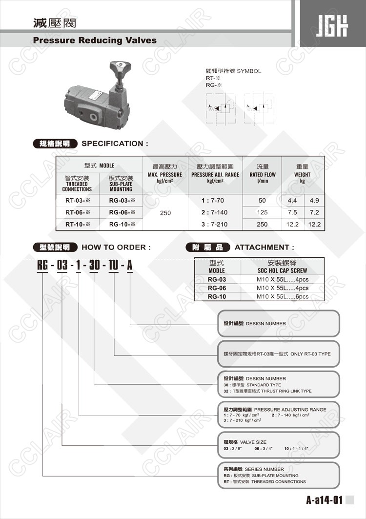 JeouGang臺(tái)灣久岡,減壓閥RG-03-1-30-TU-A,RG-03-1-32-TU-A,RG-06-3-30-TU-A,RG-06-3-32-TU-A,RG-10-1-30-TU-A,RG-10-1-32-TU-A,RT-06-3-30-TU-A,RT-06-3-32-TU-A,RT-10-1-30-TU-A,RT-10-1-32-TU-A,RT-10-2-30-TU-A,RT-10-3-30-TU-A,RT-10-3-32-TU-A