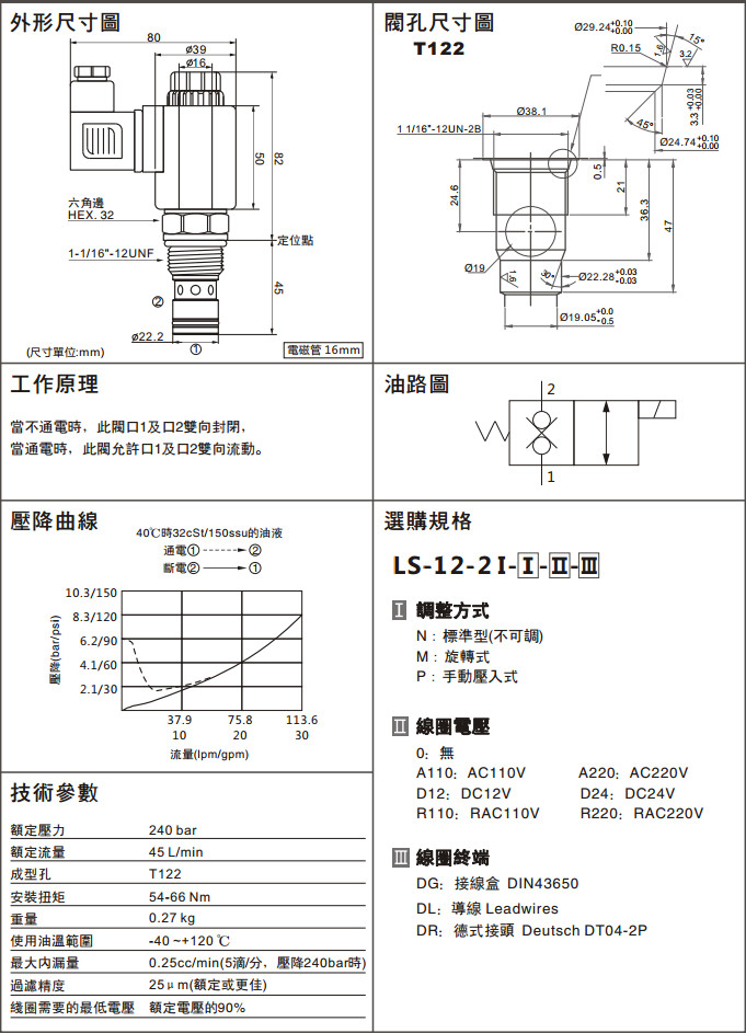 LS-12-2I-P-0-DR,LS-12-2I-P-A110-DR,LS-12-2I-P-D12-DR,LS-12-2I-P-R110-DR,LS-12-2I-P-A220-DR,LS-12-2I-P-D24-DR,LS-12-2I-P-R220-DR,兩通常閉型雙向截止電磁換向閥