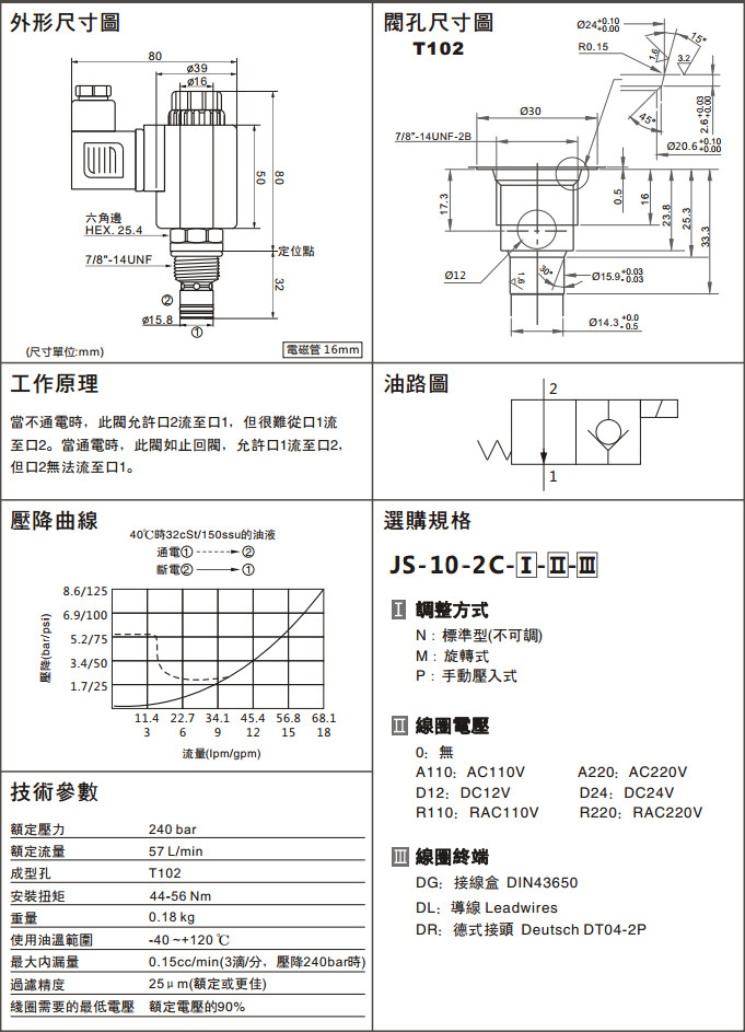 JS-10-2C-P-D12-DL,JS-10-2C-P-R110-DL,JS-10-2C-P-A220-DL,JS-10-2C-P-D24-DL,JS-10-2C-P-R220-DL, JS-10-2C-P-0-DR,JS-10-2C-P-A110-DR,JS-10-2C-P-D12-DR,JS-10-2C-P-R110-DR,JS-10-2C-P-A220-DR,JS-10-2C-P-D24-DR,JS-10-2C-P-R220-DR,兩通常開型電磁換向閥