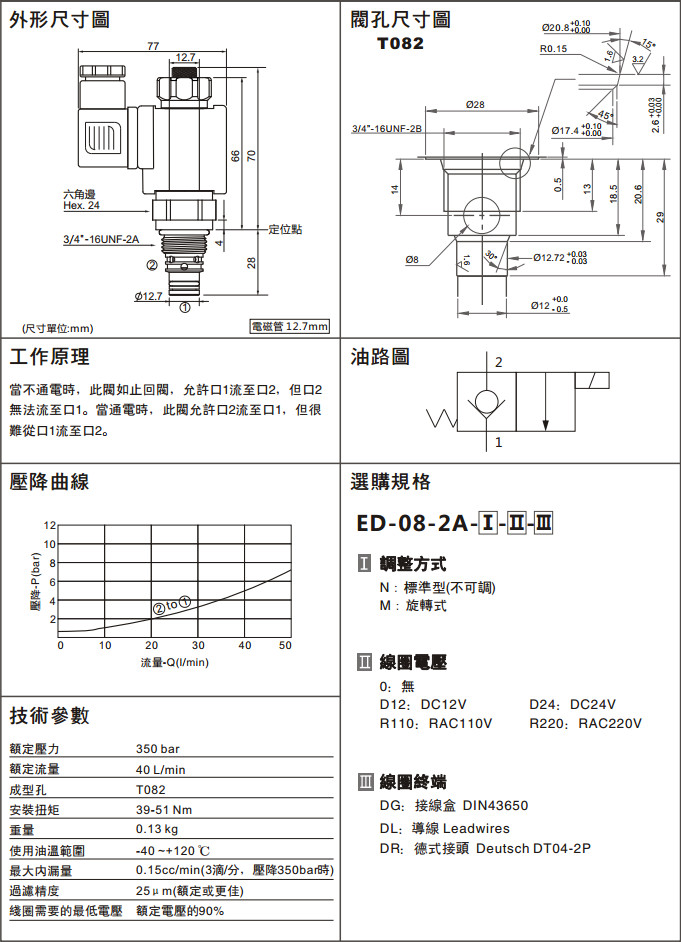 ED-08-2A-M-D24-DL,ED-08-2A-M-R220-DL,ED-08-2A-M-0-DR,ED-08-2A-M-D12-DR,ED-08-2A-M-R110-DR, ED-08-2A-M-D24-DR,ED-08-2A-M-R220-DR,兩通常閉型電磁換向閥