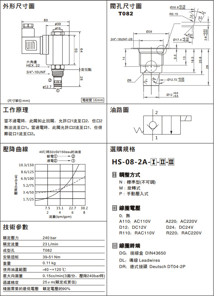 HS-08-2A-P-0-DR,HS-08-2A-P-A110-DR,HS-08-2A-P-D12-DR,HS-08-2A-P-R110-DR,HS-08-2A-P-A220-DR,HS-08-2A-P-D24-DR,HS-08-2A-P-R220-DR,兩通常閉型電磁換向閥