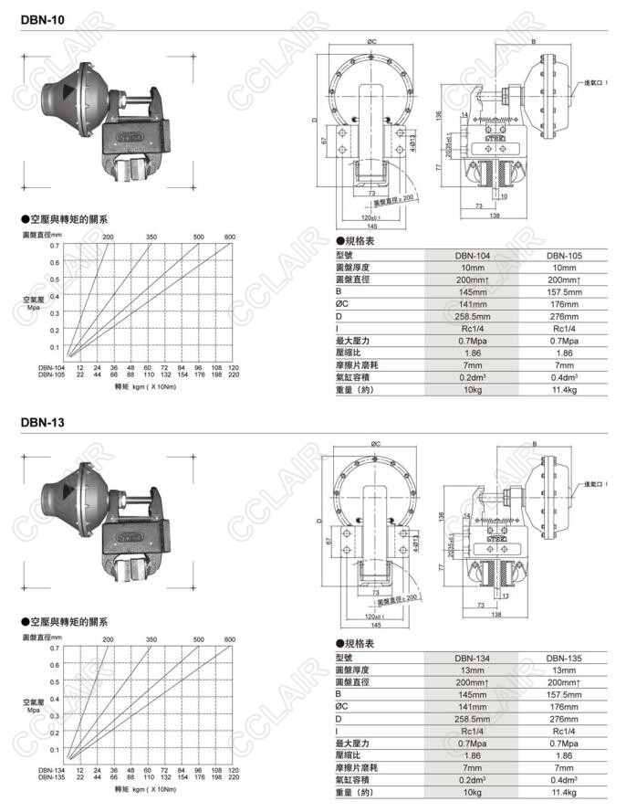 DBN-10,DBN-104,DBN-105,DBN-13,DBN-134,DBN-135,空壓蝶式制動器