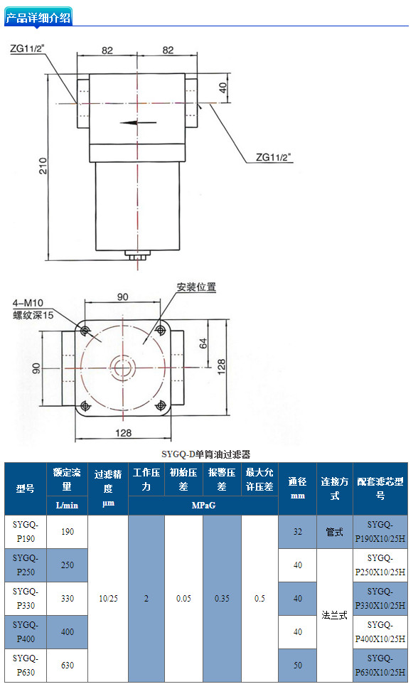 SYGQ-P190,SYGQ-P250,SYGQ-P330,SYGQ-P400,SYGQ-P630,SYGQ-D型單筒油過(guò)濾器