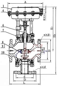 1.切斷閥采用多彈簧執(zhí)行機構(gòu)與調(diào)節(jié)機構(gòu)用三根立相連,整個高度可減小約30%,重量可減輕約30%。