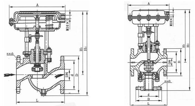 本系列產(chǎn)品有薄膜式、活塞式兩種。閥體結(jié)構有單座、套筒、雙座(二位三通)三種,密封形式有填料密封和波紋管密封兩種,產(chǎn)品公稱壓力等級有PN10、 16、40、46四種,公稱口徑范圍DN20~200mm。適用流體溫度由-60~450℃。泄漏量等級為IV級或VI級。流量特性為快開。