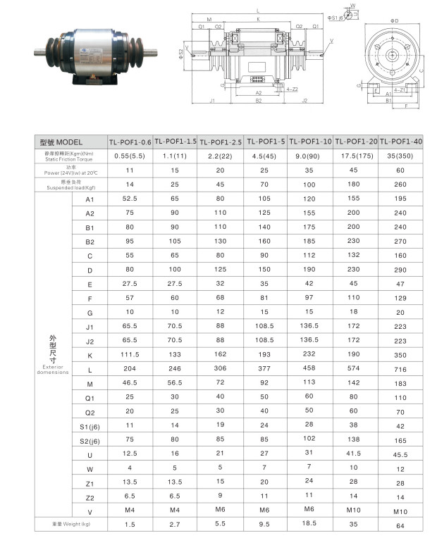 TL-POF1-0.6,TL-POF1-1.5,TL-POF1-2.5,TL-POF1-5,TL-POF1-10,雙電磁離合器組帶皮帶輪
