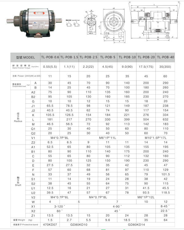 TL-POB-0.6,TL-POB-1.5,TL-POB-2.5,TL-POB-5,TL-POB-10,TL-POB-20,外露式電磁離合剎車器組