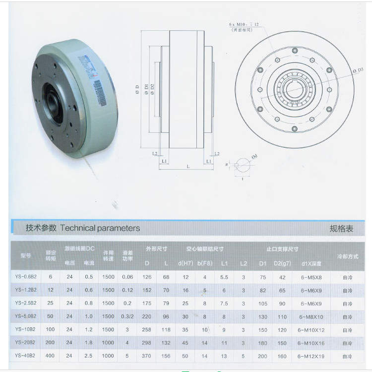 YS-0.6B2,YS-1.2B2,YS-2.5B2,YS-5B2,YS-10B2,YS-20B2,YS-40B2,磁粉制動器