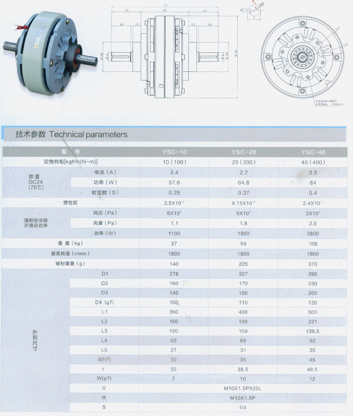 YSC-10,YSC-20,YSC-40,磁粉離合器