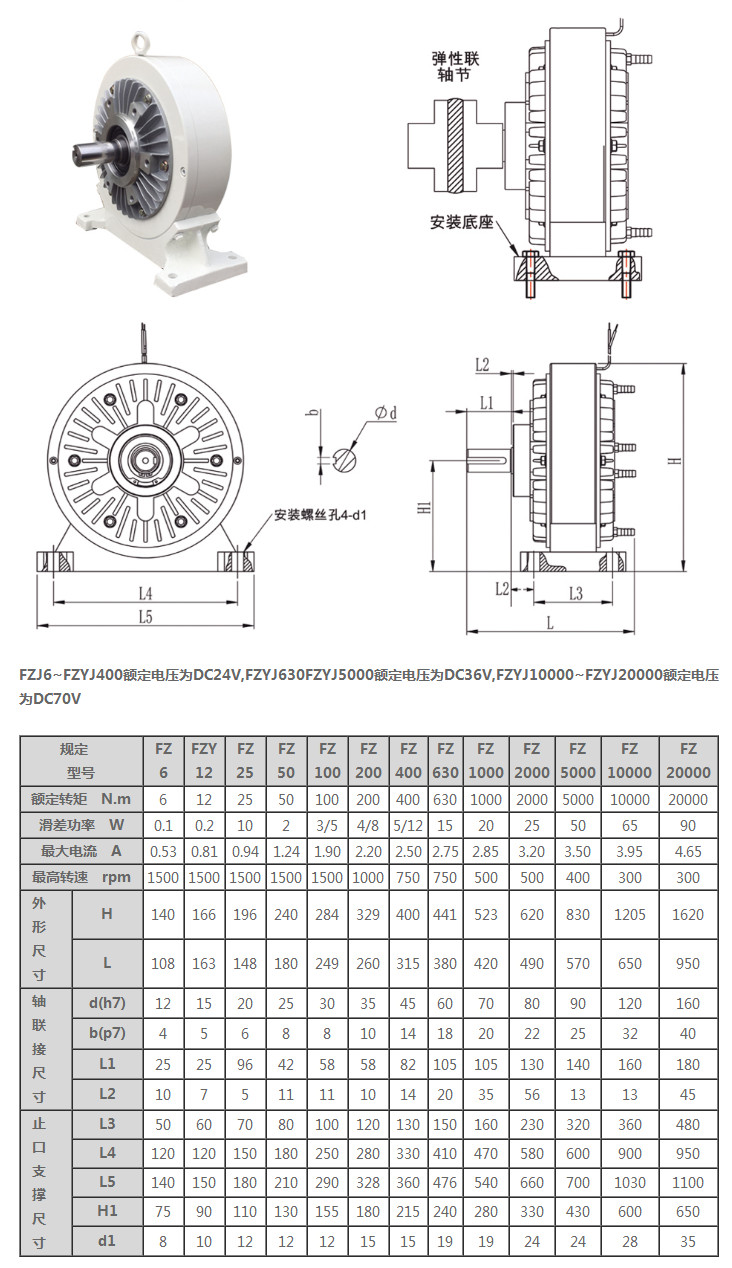 FZ6,FZY12,FZ25,FZ50,FZ100,FZ200,FZ400,FZ630,FZ1000,FZ2000,FZ5000,FZ10000,FZ20000機座支撐磁粉制動器