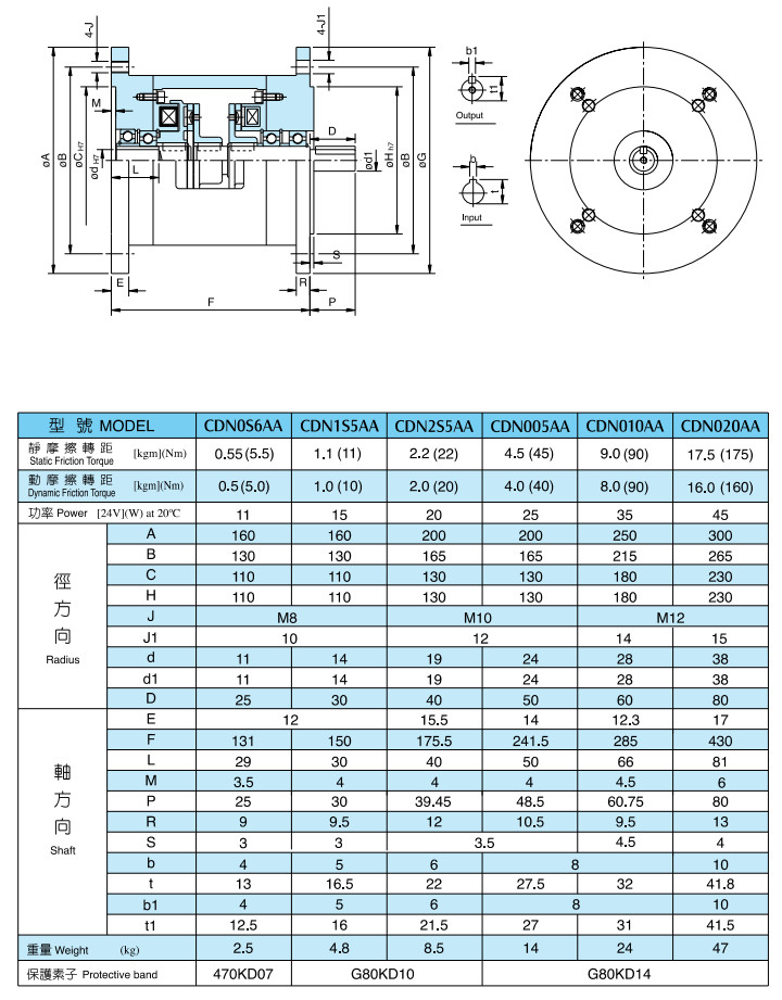 CDN0S6AA,CDN1S5AA,CDN2S5AA,CDN005AA,CDN010AA,CDN020AA雙電磁離合器內(nèi)嵌電磁剎車(chē)器組