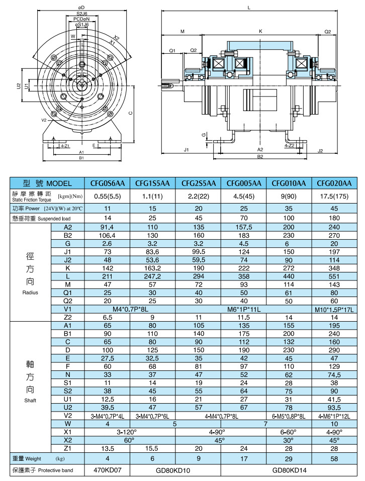 CFG0S6AA,CFG1S5AA,CFG2S5AA,CFG005AA,CFG010AA,CFG020AA雙電磁離合器內(nèi)嵌電磁剎車器組
