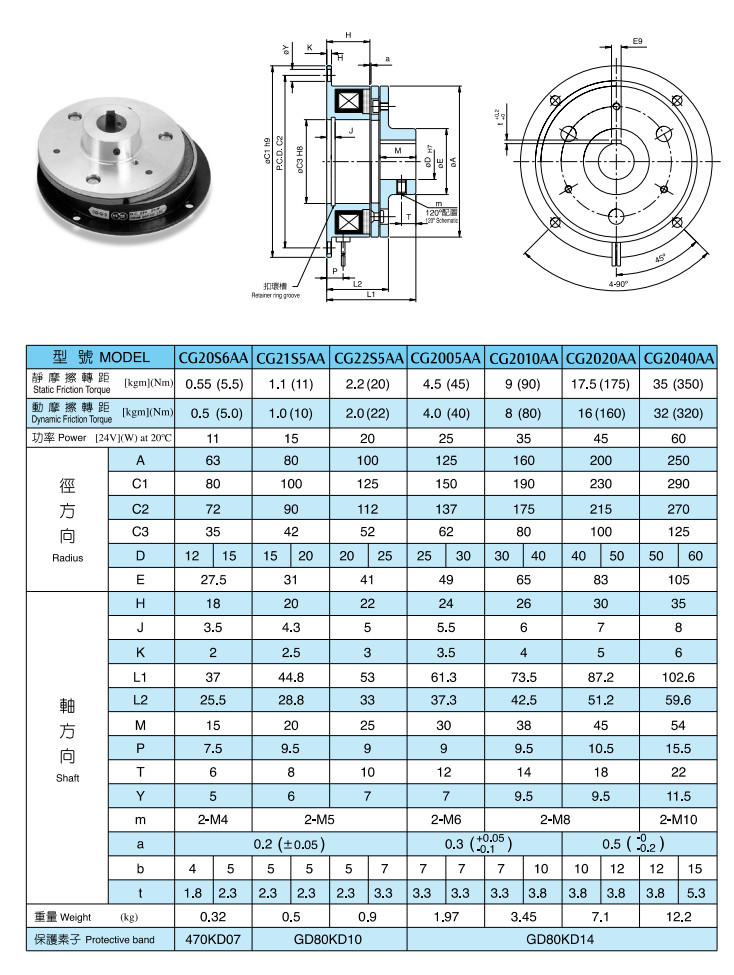 CG20S6AA,CG21S5AA,CG22S5AA,CG2005AA,CG2010AA,CG2020AA,CG2040AA干式單片電磁剎車(chē)器
