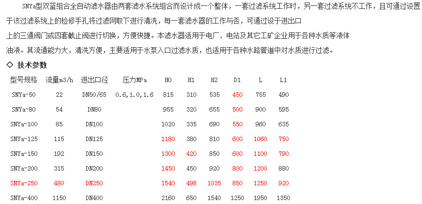 SNYa-50,SNYa-80,SNYa-100,SNYa-125,SNYa-150,SNYa-200,SNYa-250,SNYa-400,雙藍(lán)組合全自動濾水器